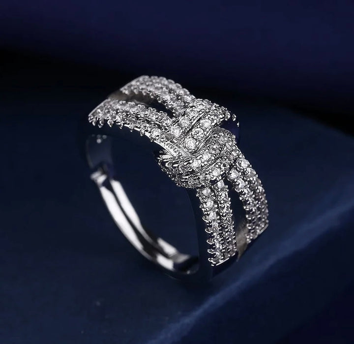 Make a bold and confident statement with this Shaded Zircon Knot Layer Ring. Its polished finish and substantial design offer a modern, versatile appeal that perfectly complements any look.